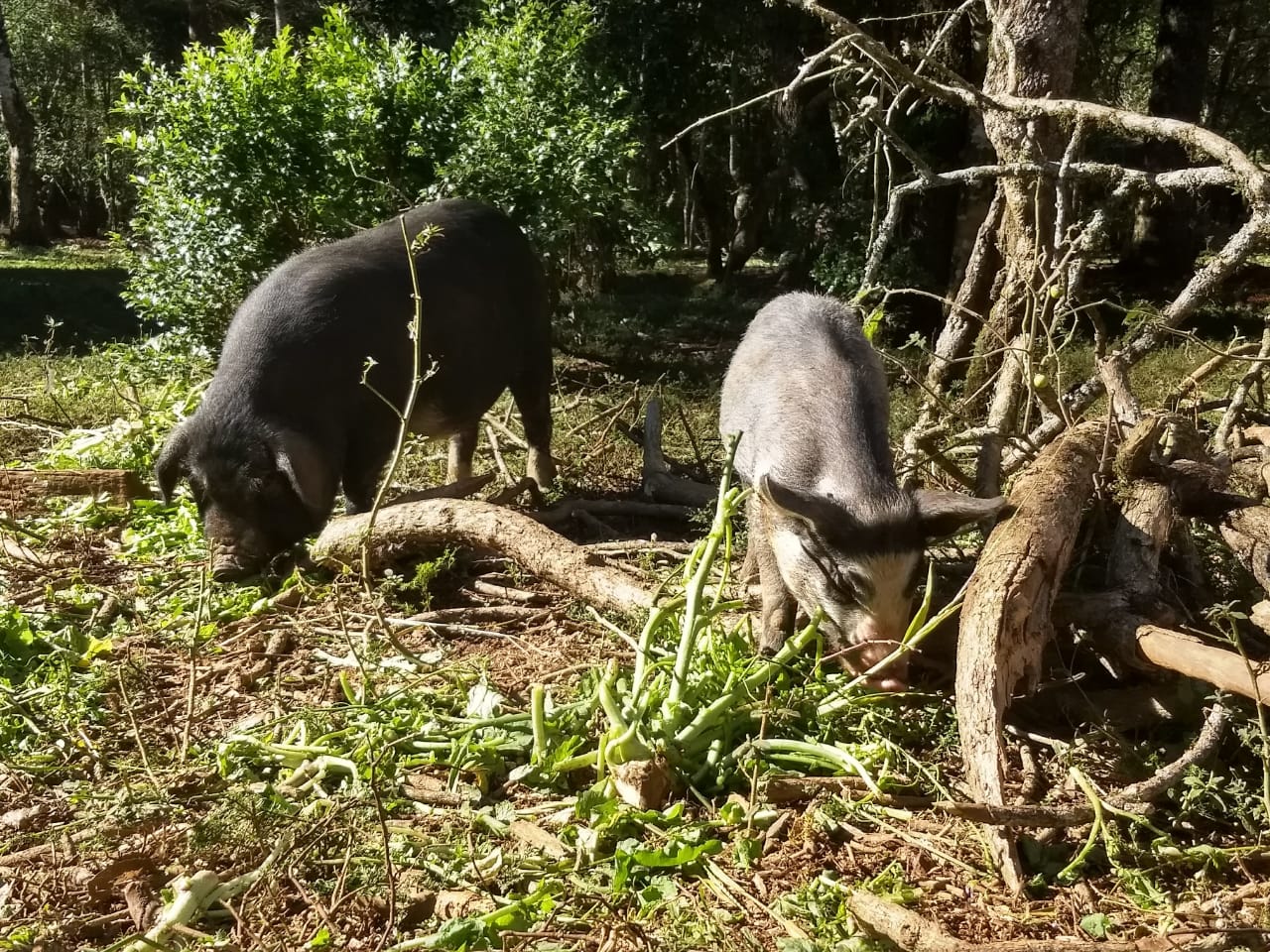 Porcos são soltos nos criadouros comunitários no faxinal Emboque. Foto: Ana Wenglarek